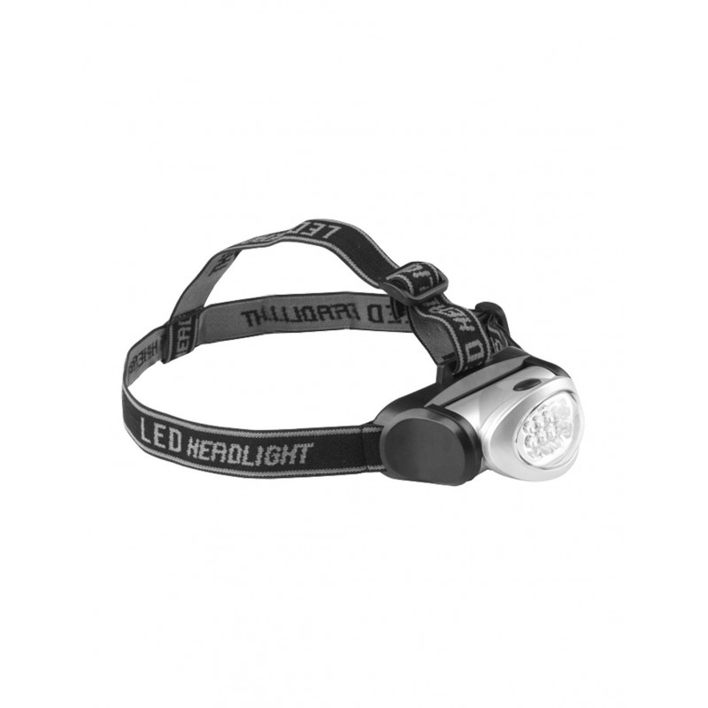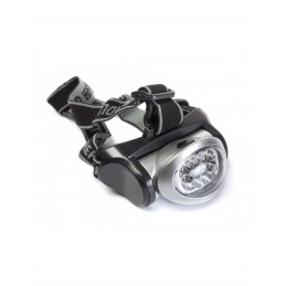 Faro delantero para cabeza o casco con 8 LED blancos. Función: 2 LED fijos - 4 LED fijos - 8 LED fijos - apagado. Batería: AAA x 3 (no incluida).